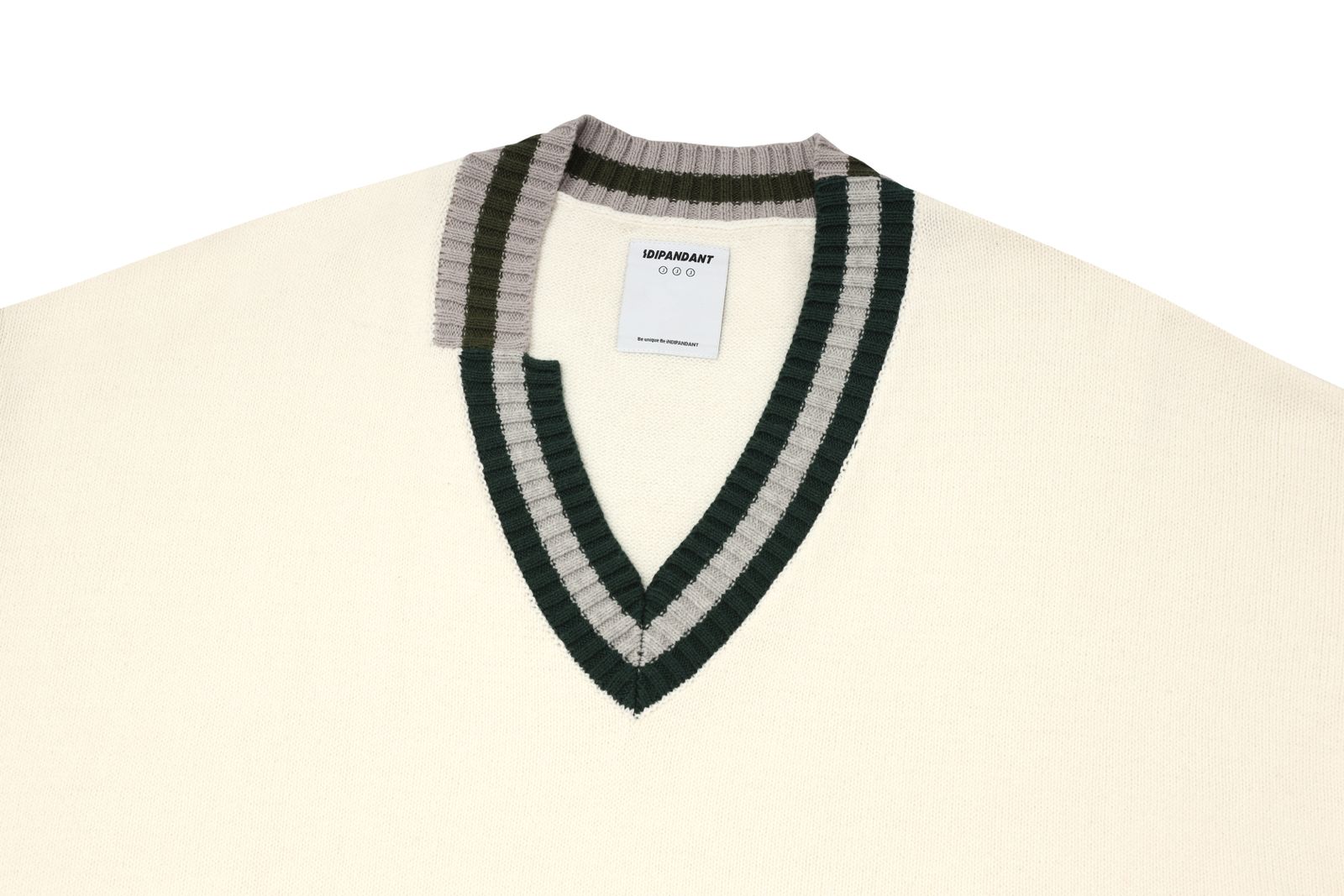 Asymmetric contrasting V-neckline