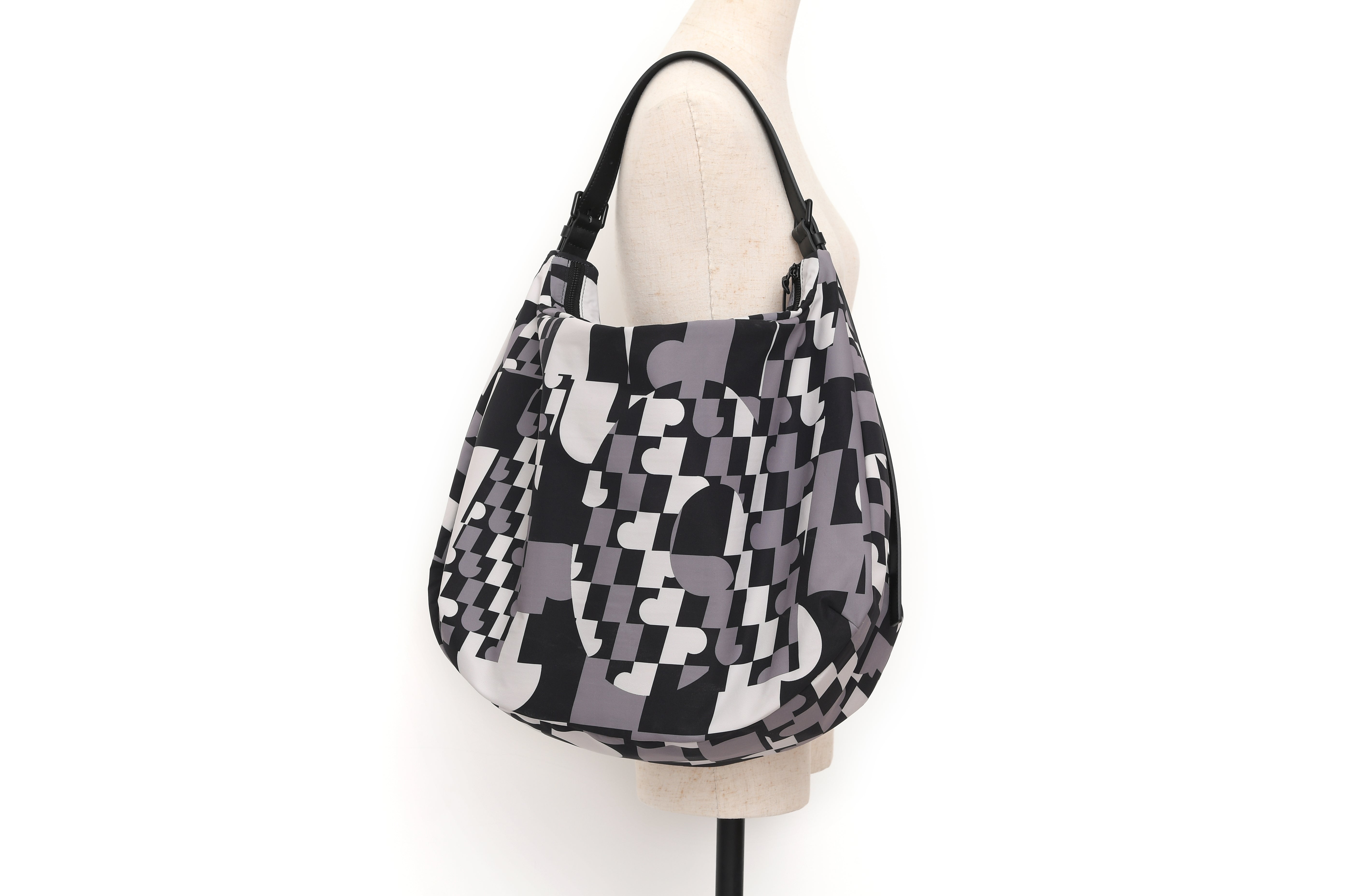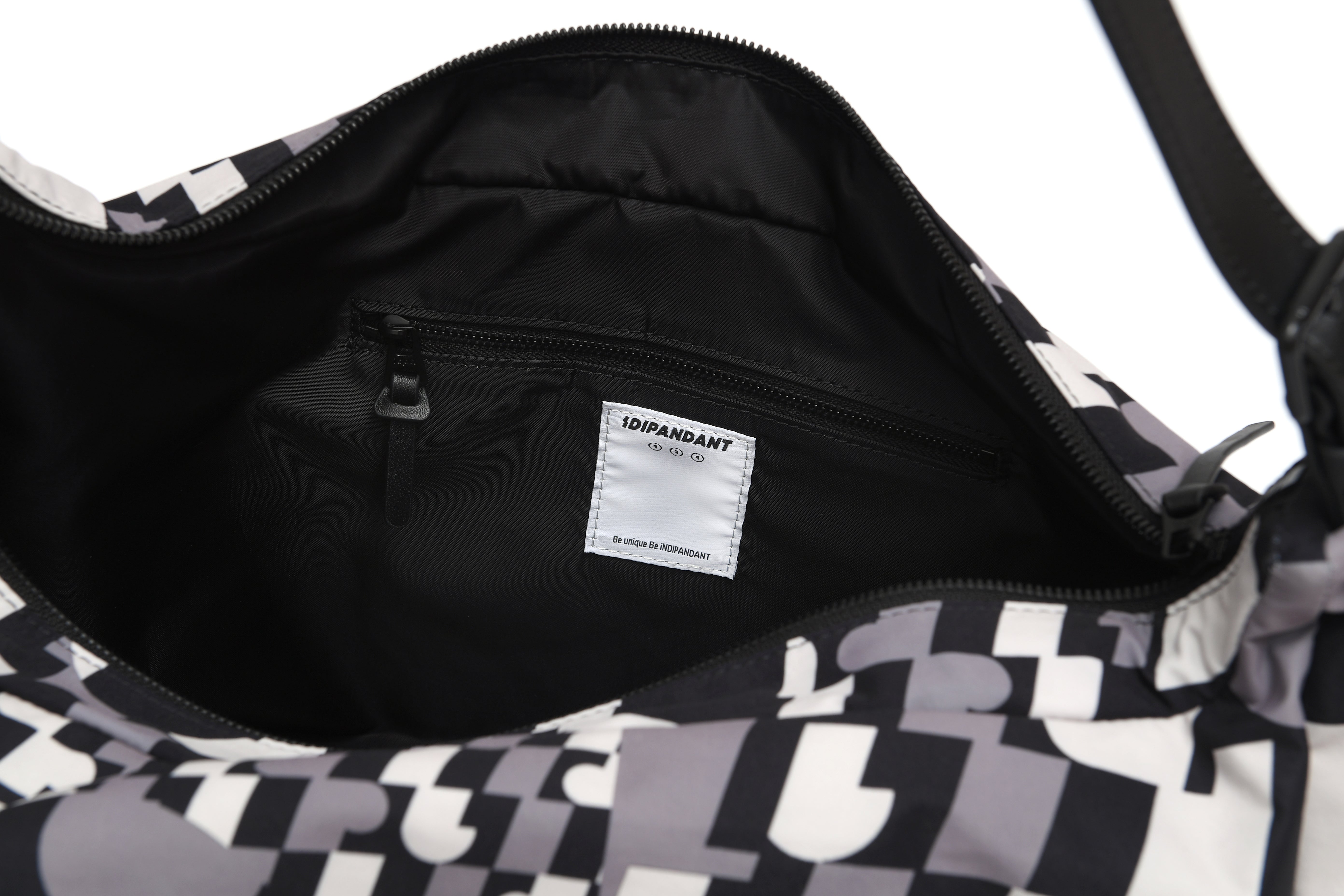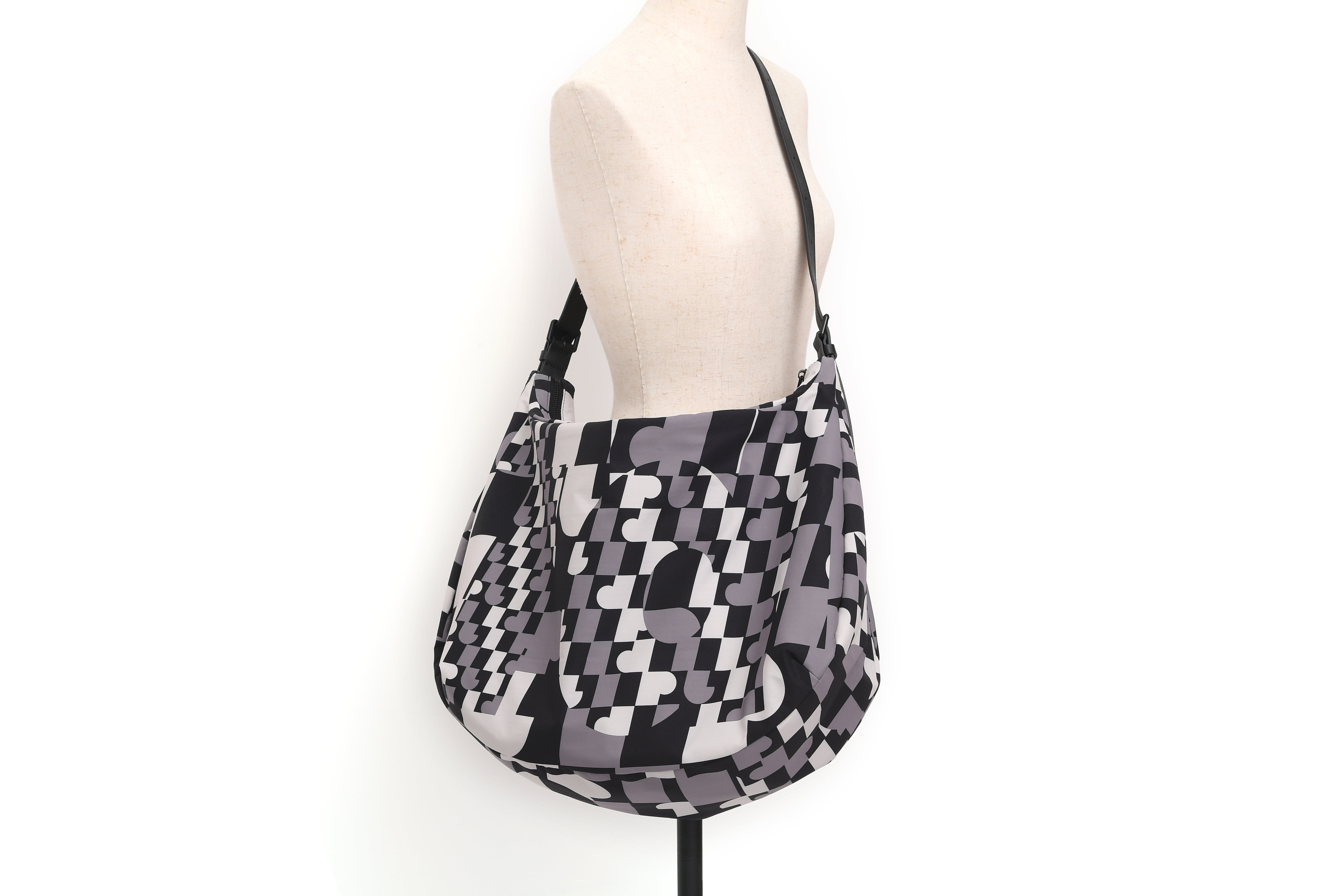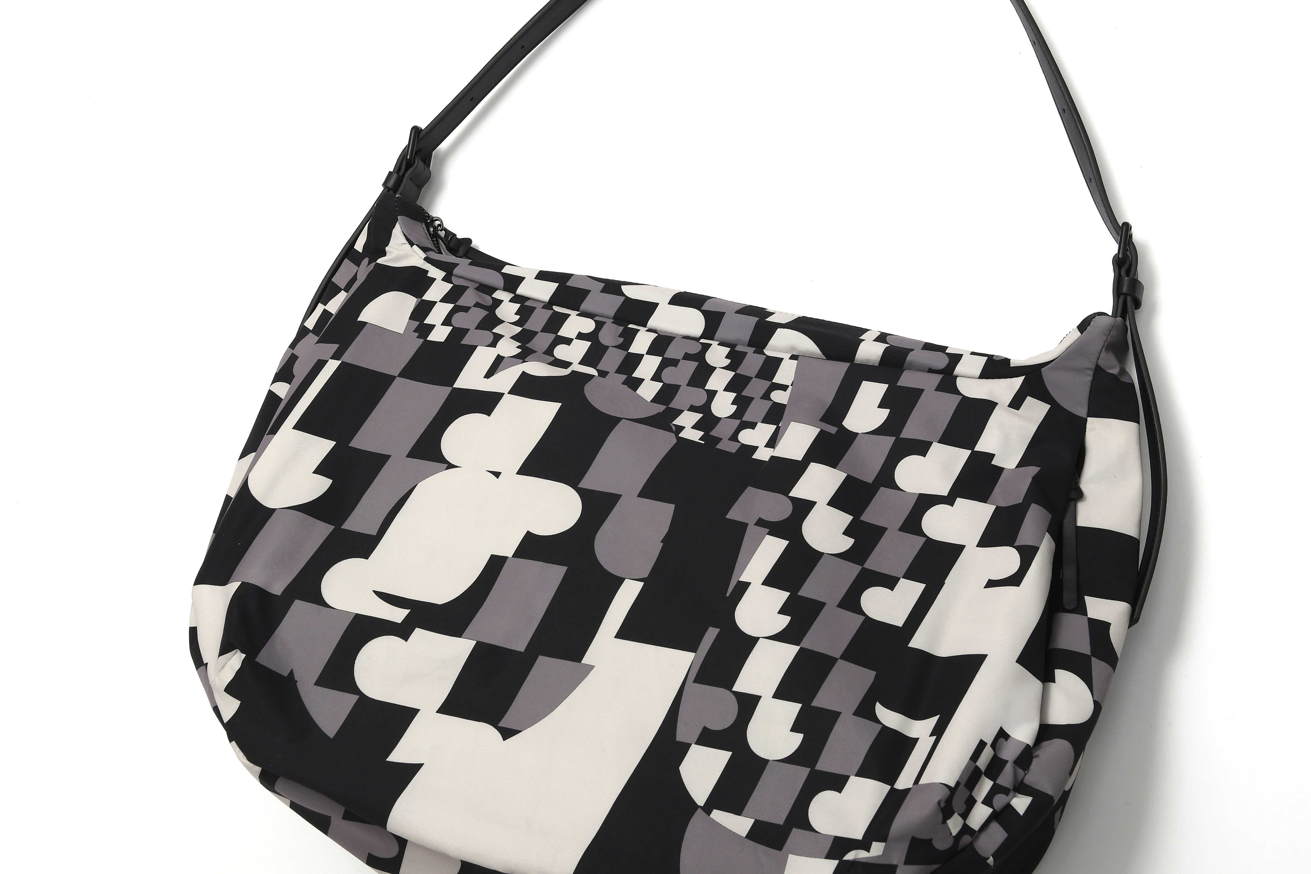 100% PolyesterZip closureAdjustable strap, can be used as handbag, shoulder bag and crossbody bagZip pocket at interior, Zip side pocketPrinted logo graphicApproximate measurement: Height 30cm, Width 47cm, Depth 17cm, Strap 25-75cm