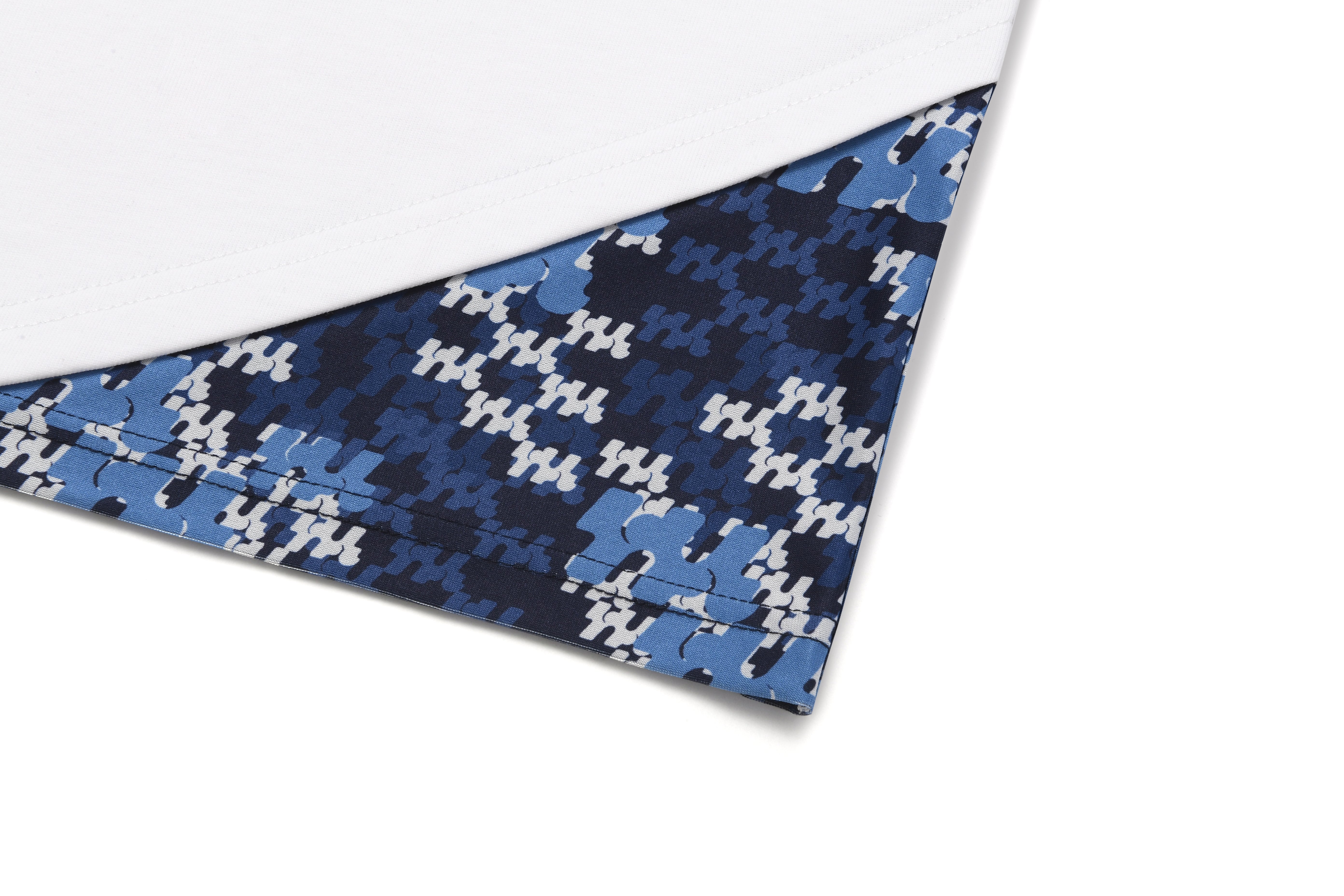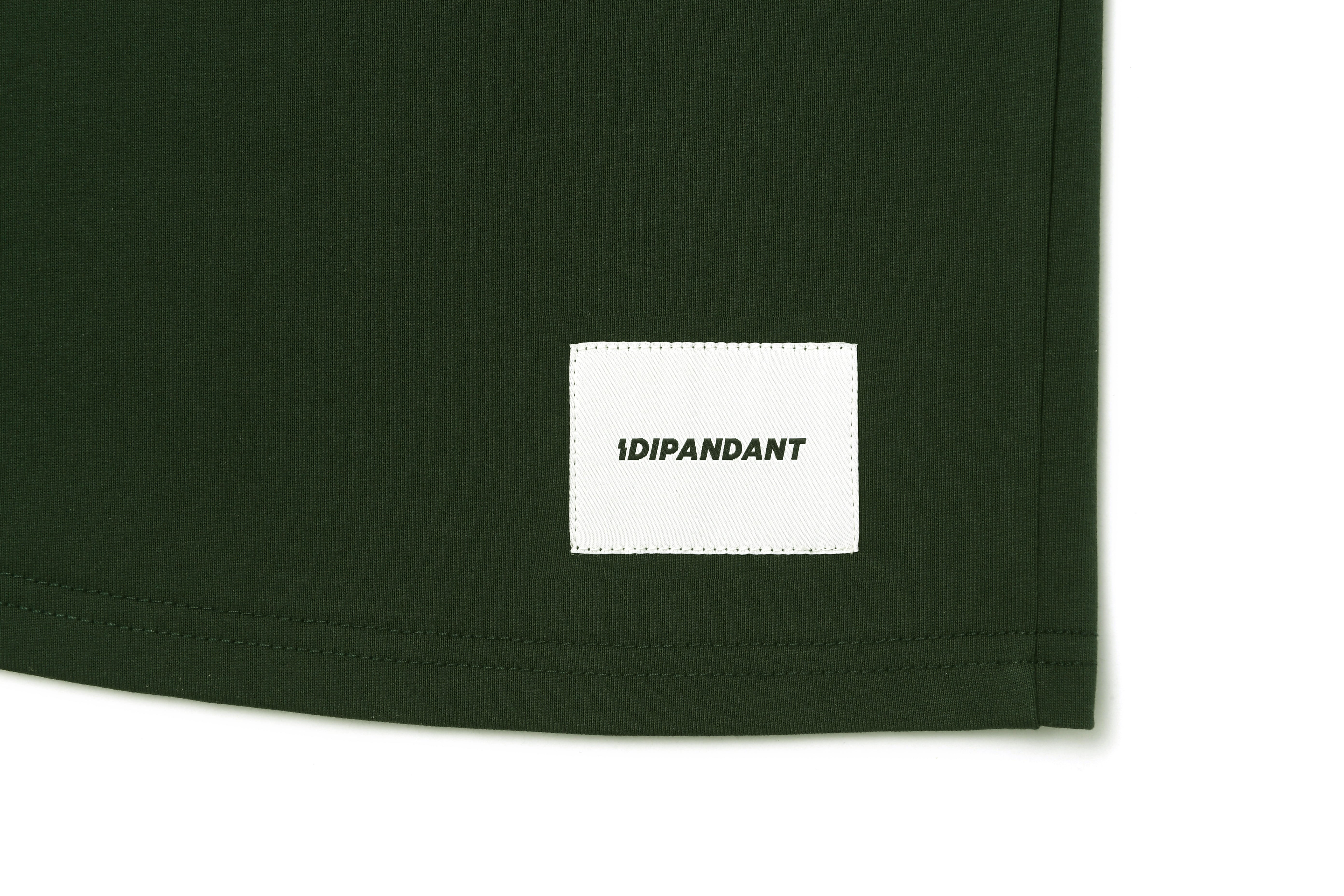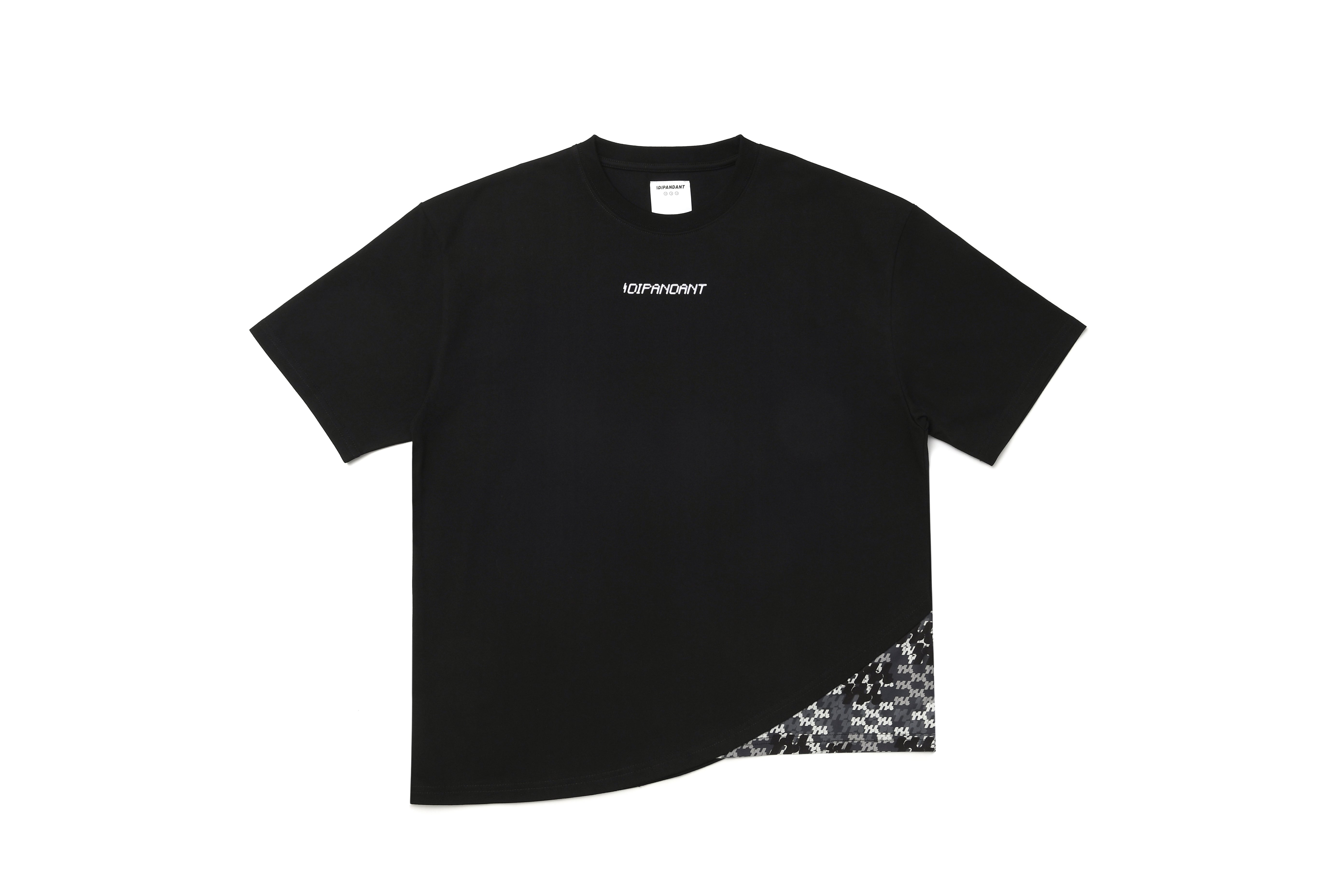 Curved hem with logo graphic pattern patch